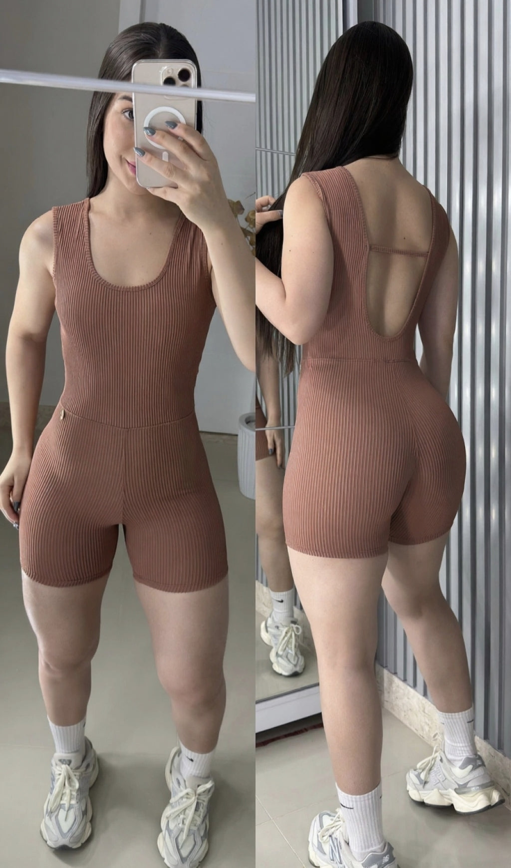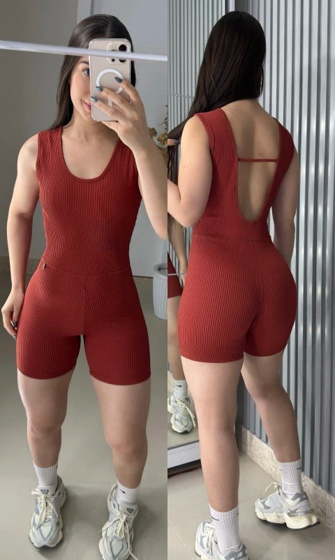 Macaquinho todo no poliamida canelado 3D, super macio e confortável, possui bojo removível e costas abertas !